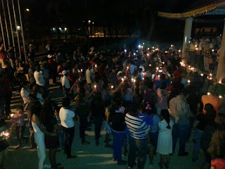 Todavía tarde en la noche la gente se reunió para celebrar con velas en el parque central de La Unión al grito de: