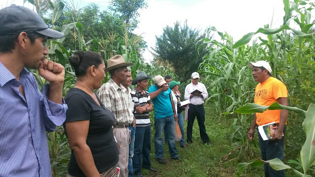 Amigos de la biodiversidad conocen sobre practicas para el manejo integral del pulgon del maicillo. Comunidad Suyapa, Pespire, Choluteca