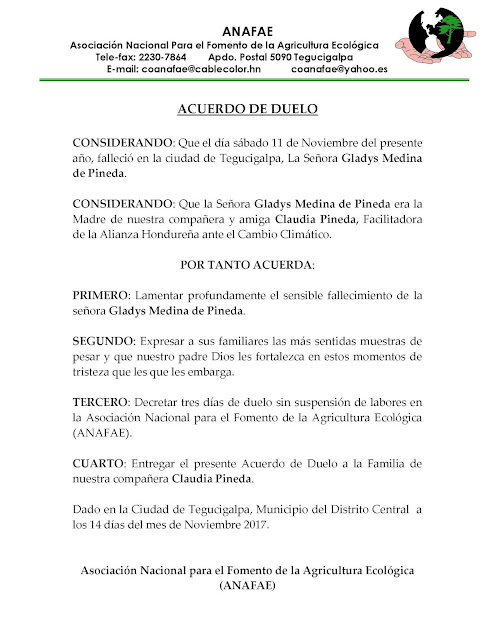 Las organizaciones sociales comunitarias, campesinas, indígenas, ambientales y de Derechos Humanos de diverso tipo que hoy nos manifestamos en las calles de Tegucigalpa, exigimos la realización de nuestro Derecho a la Alimentación y demandamos que el Estado de Honduras agilice la ruta para el logro de nuestra Soberanía Alimentaria. leer mas aqui.